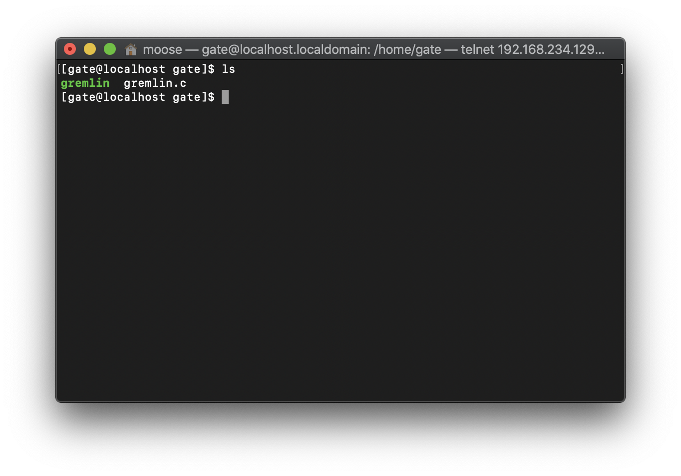 소스 파일 하나와 실행파일이 보인다. gremlin을 실행해보았다.
